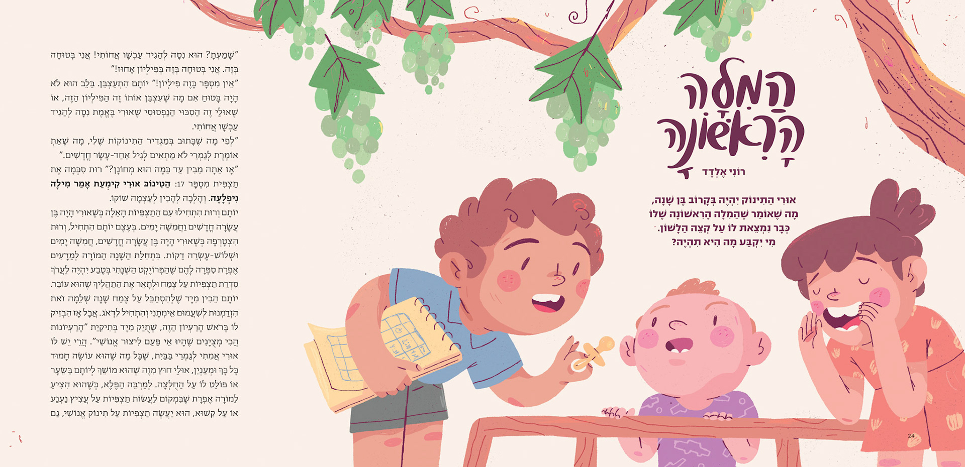 Illustration for issue 124 of Adam Tzair children's magazine, themed "By Myself" - exploring activities and experiences children can do independently. The issue focuses on themes of self-reliance, personal capabilities, and childhood independence.